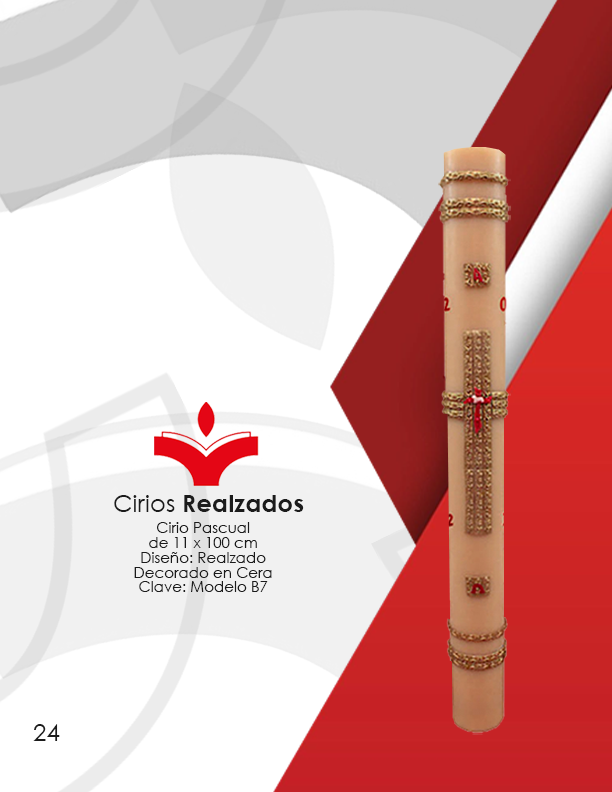 Cirio Pascual de 11 x 100 cm Diseño: En Realzado Decorada en Cera