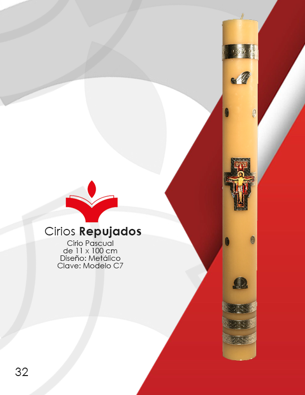 Cirio Pascual de 11 x 100 cm Diseño Metálico En Repujado