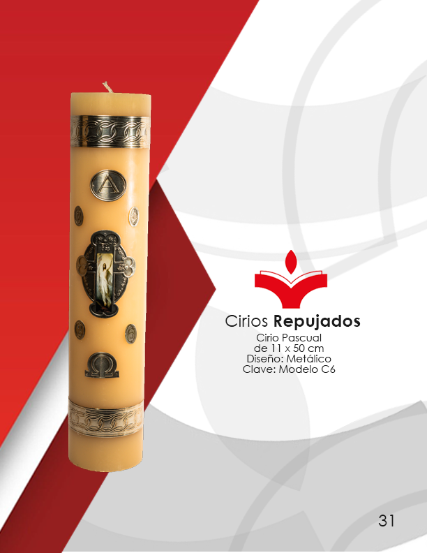 Cirio Pascual de 11 x 100 cm Diseño Metálico En Repujado