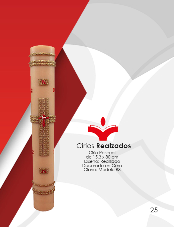 Cirio Pascual de 15.3 x 80 cm Diseño: En Realzado Decorada en Cera