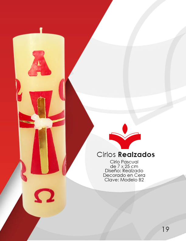 Cirio Pascual de 11 x 25 cm Diseño: En Realzado Decorada en Cera