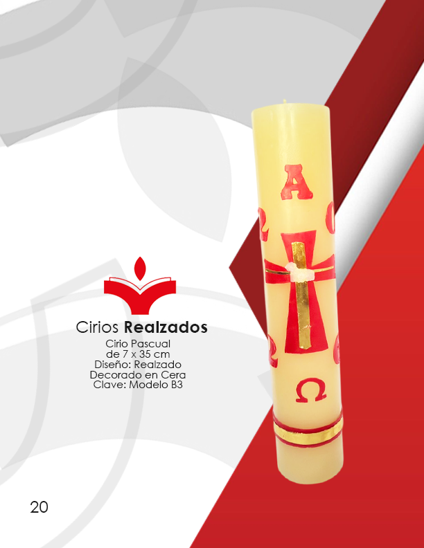 Cirio Pascual de 7 x 35 cm Diseño: En Realzado Decorada en Cera